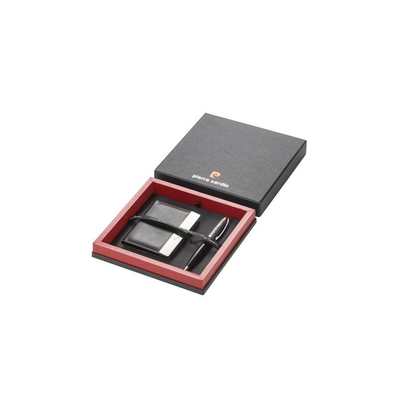 Луксозен комплект, който съдържа калъф за документи и елегантен химикал, съчетани със стилна кутия Pierre Cardin. Калъфът има 12 броя отделения за карти. Материал: естествена кожа. Размери: 10.9 х 7.7 см