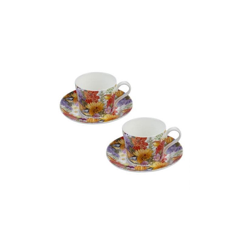 Порцеланов комплект за кафе 2 чаши + 2 чинийки Слънчоглед