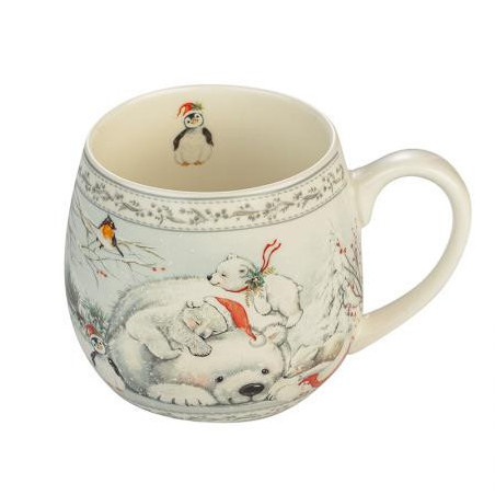 Коледна чаша изработена от порцелан с красив дизайн на бяла мечка. Напълни твоята чаша с коледно настроение и създай уют в дома. Коледната чаша пристига при теб в красива подаръчна кутийка със сатенена панделка. Размери: Ø 8.5 см, височина 10.5 см