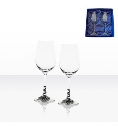 Сетът се състои от 2 бр.чаши за бяло вино от кристално стъкло. Декорация от сплав от калай и сребро във формата на грозд върху столчето на чашите. Произведени в Португалия от „Freitas & Dores“. Комплектът се предлага в луксозна синя кутия, облицована отвътре със сатен.