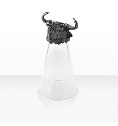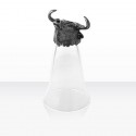 Чаша за аперитив/ракия/ от кристално стъкло с оригинална визия-глава на животно, изработена от сребро и калай. Предлага се в бяла картонена кутия Произведена в Португалия от „Freitas & Dores“.