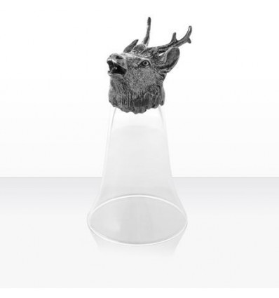 Чаша за аперитив/ракия/ от кристално стъкло с оригинална визия-глава на животно, изработена от сребро и калай. Предлага се в бяла картонена кутия Произведена в Португалия от „Freitas & Dores“.
