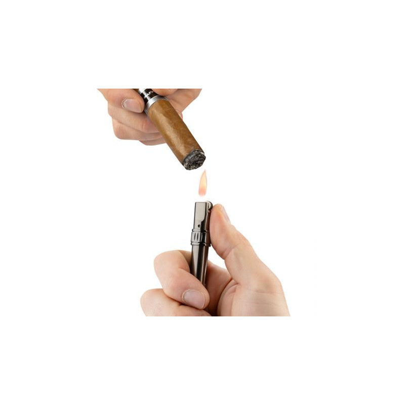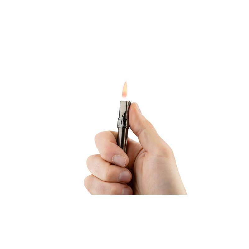 Елегантна ветроустойчива запалка с изключително изтънчен дизайн. Предлага се в луксозна подаръчна кутия. Размери: 8 х 1 см.