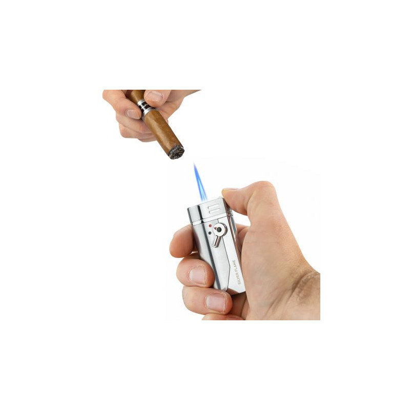 Елегантна ветроустойчива запалка с изключително изтънчен дизайн. Предлага се в луксозна подаръчна кутия. Размери: 7 х 3 х 1 см.
