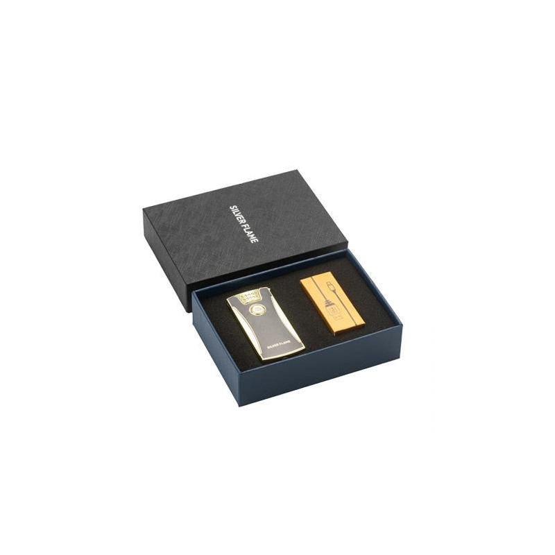 Елегантна запалка с изключително изтънчен дизайн. Зареждане с USB. Предлага се в луксозна подаръчна кутия и кабел за зареждане. Размери: 7.5 х 3.5 х 1 см.