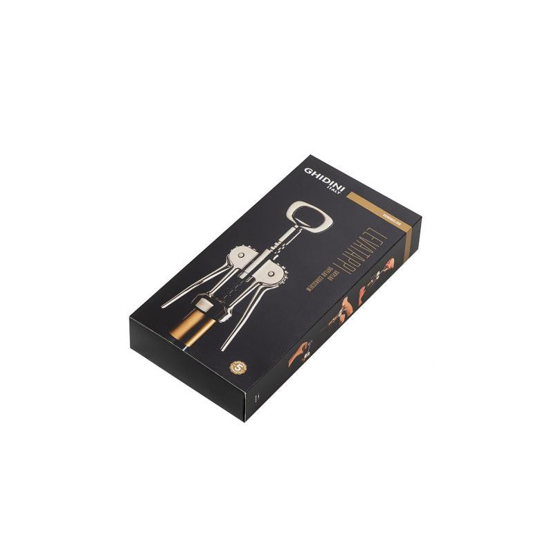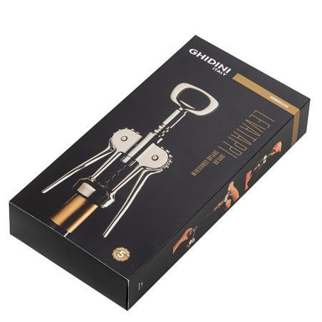 Италиански тирбушон от неръждаема стомана. С двойно лостово действие. Размери: 21 х 7 см.