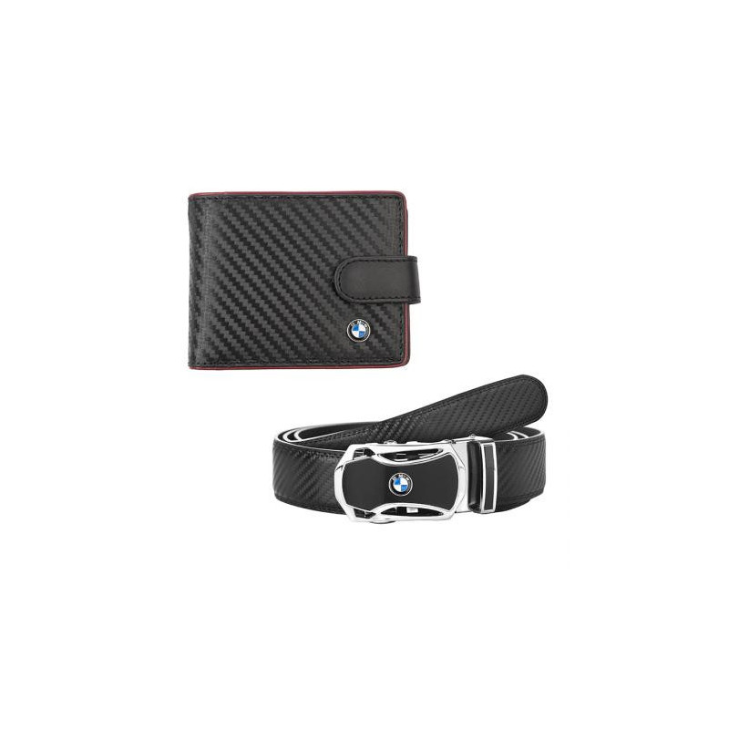 Комплект портфейл и колан Auto Set с логото на BMW - карбон