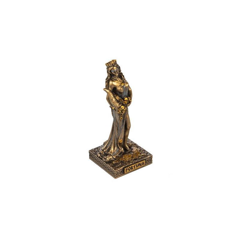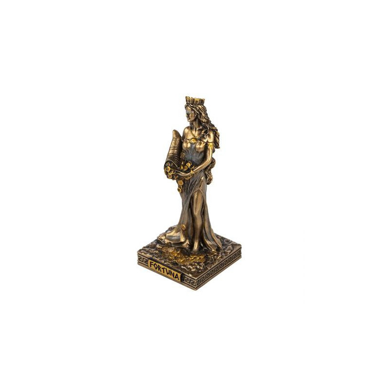 Фортуна е богиня на съдбата, щастието и късмета и едно от най-почитаните божества от италийците. Смятало се, че от нея зависят не само хората, но и боговете. Първоначално богиня на реколтата, майчинството и жените, впоследствие Фортуна става богиня на съдбата и щастливата случайност. Била изобразявана с рог на изобилието и весло, като кормчия на човешкия живот. Ликът на богинята присъствал върху монетите на всички римски императори. Статуетката е изработена прецизно от полирезин с покритие от метал и с внимание към всеки детайл Размери на статуетката: 4 x 4 x 9 см