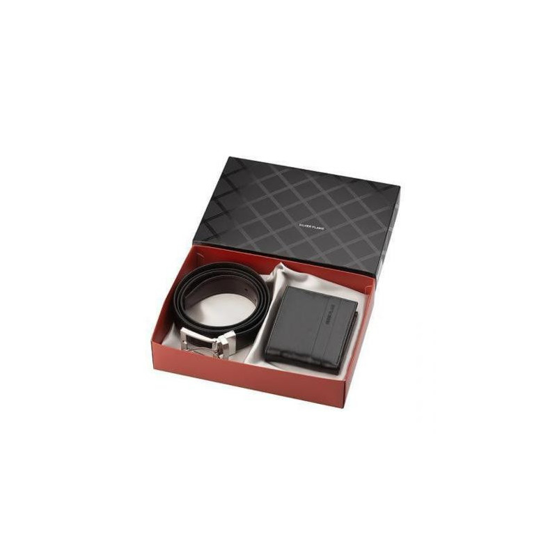 Луксозен комплект, който включва портфейл и колан от естествена кожа в подaръчна кутия на SILVER FLAME. Размери на портфейла: 11 x 9 x 2 см.