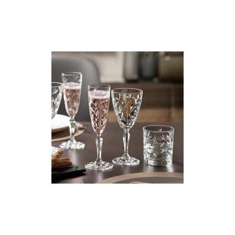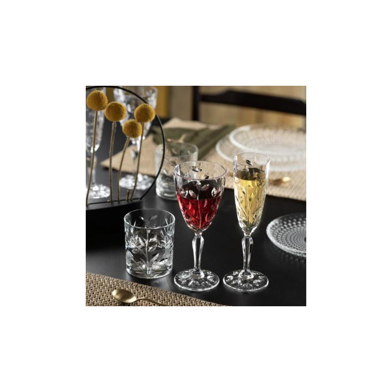 Размери: Ø 8.4 см. Вместимост: 330 мл. Височина: 9.3 см. Стилен сервиз от 6 чаши за уиски, произведени от италианската фирма RCR Crystal. Материал: кристалин 2,45 % плътност.