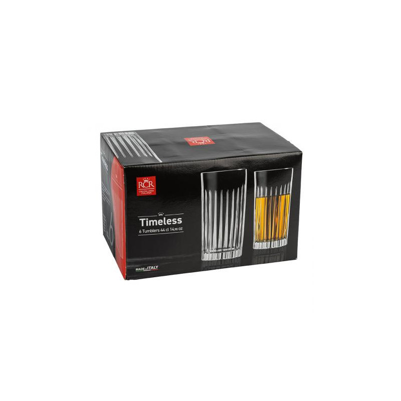 Стилен сервиз от 6 чаши за вода, произведени от италианската фирма RCR Crystal. Размери: Ø 7.6 см, h 15 см. Вместомост: 440 мл. Подходящи за почистване в съдомиялна машина. Подарете си финес и красота на масата с италианско качество. Материал : кристалин 2,45 % плътност.