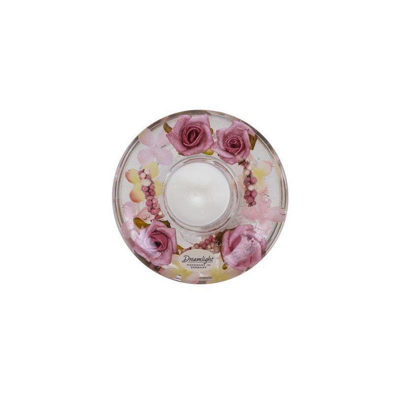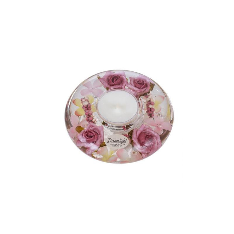 Стъклен свещник с красива вътрешна декорация.Включва чаена свещ. Размери: 4 x 10 см.