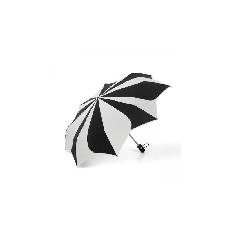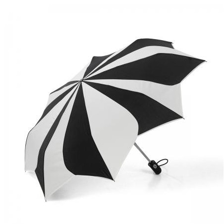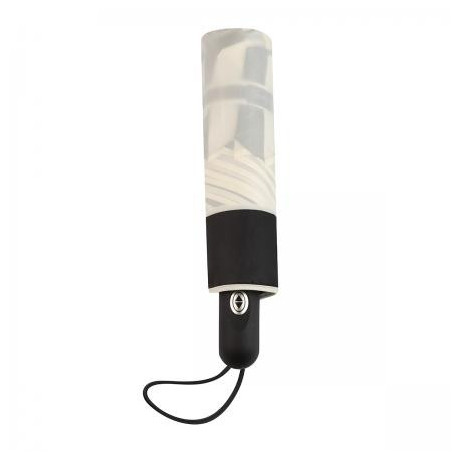 Елегантен чадър в нежно бяло и черно с форма, наподобяваща цвете с красиво обточени с бял кант. Чадърът е с автоматично отваряне и затваряне, удобна дръжка и калъф при сгънато положение. Може да бъде вашият елегантен аксесоар - лек, удобен и подходящ за всяка дамска чанта, който да ви предпази от настроението на времето. Височина: 28 см. Диаметър: 92 см.