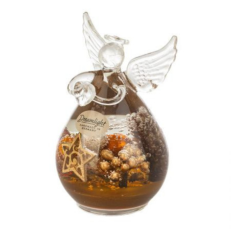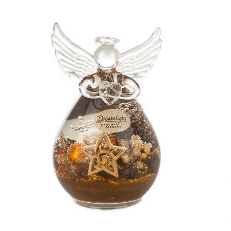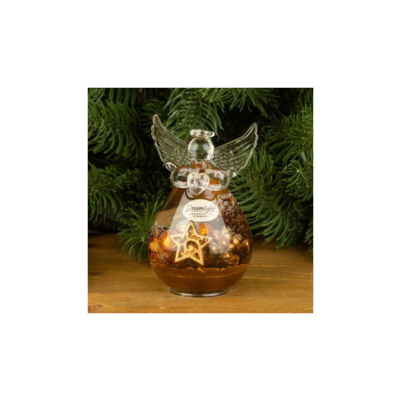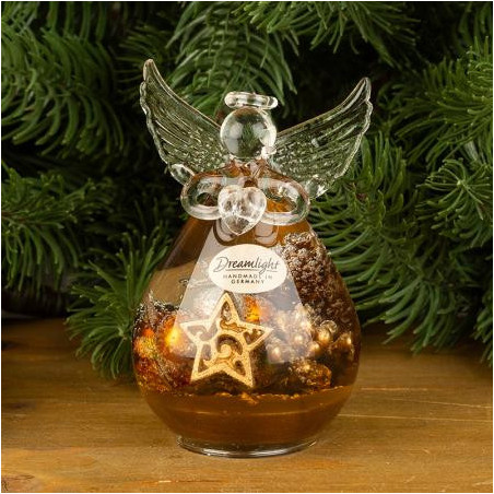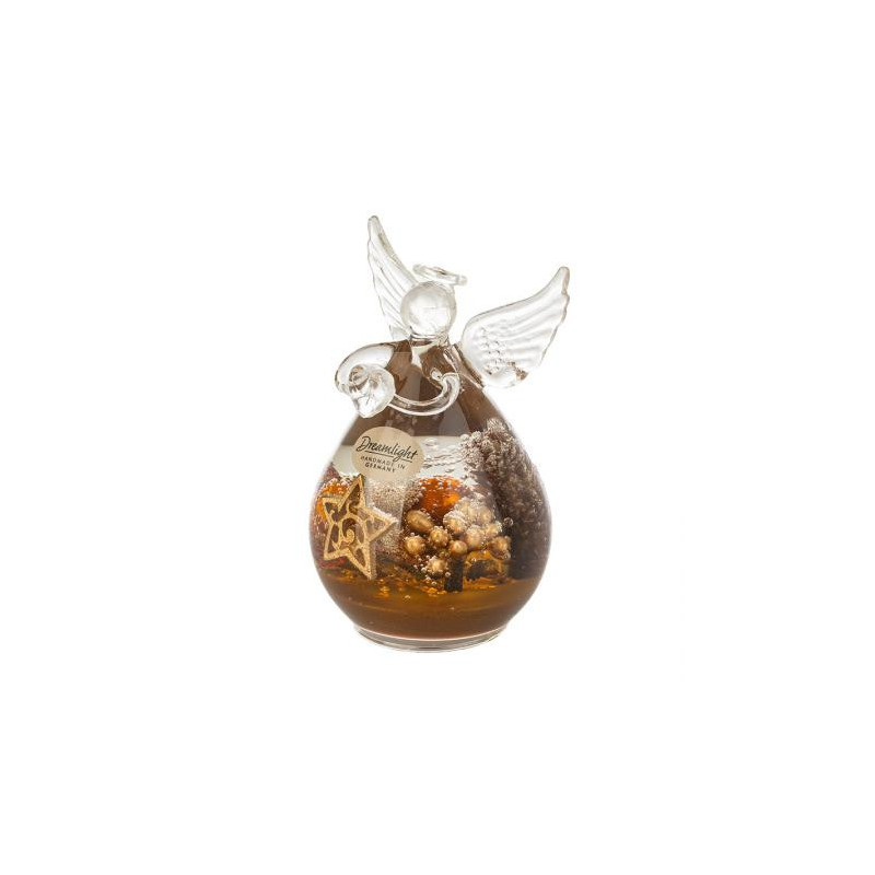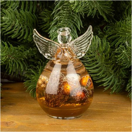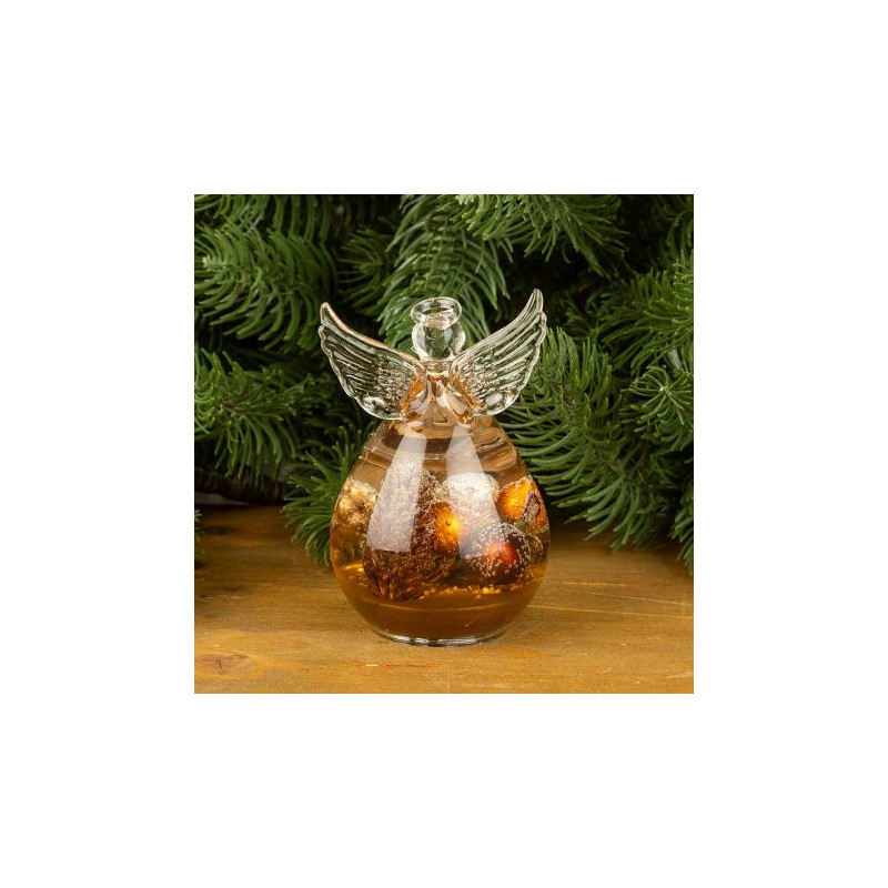 Стъклена фигура на ангел с коледна декорация. Размери: 10 х 7 см.