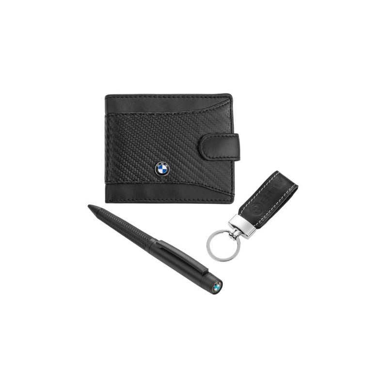 Мъжки комплект химикалка, портфейл и ключодържател Auto Set с логото на BMW