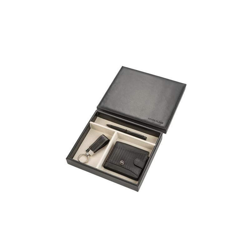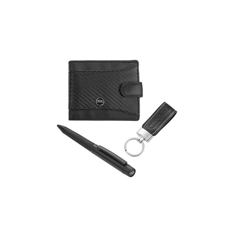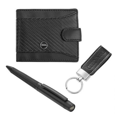 Мъжки комплект химикалка, портфейл и ключодържател Auto Set с логото на Audi