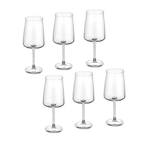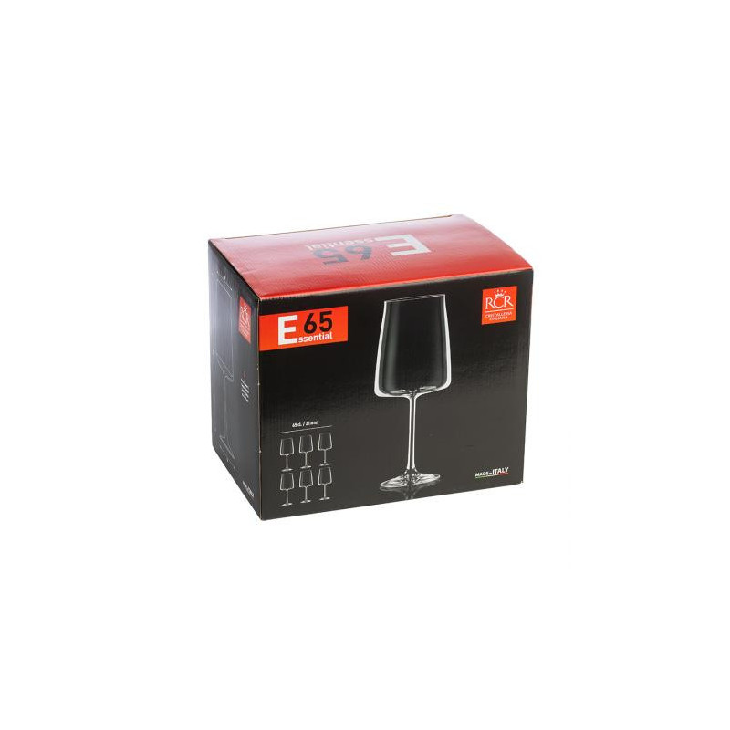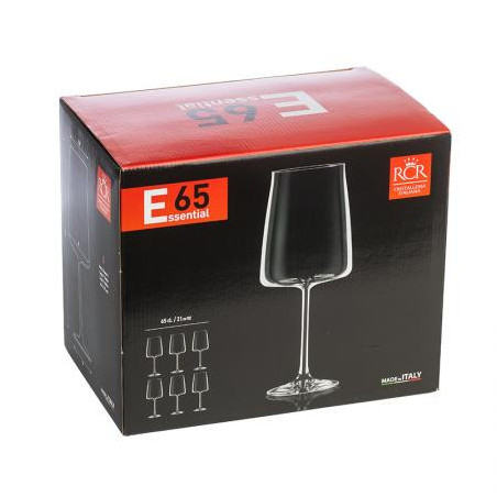 Чаши: Ø 9,5 см. Височина: 23,5 см. Вместимост: 650 мл. Стилен комплект от 6 чаши за вино, произведени от италианската фирма RCR Crystal. Чашите създават усещане за наслада от вкуса на виното с нестандартната си форма и изящен дизайн. Подходящи за почистване в съдомиялна машина. Подарете си финес и красота на масата с италианско качество.