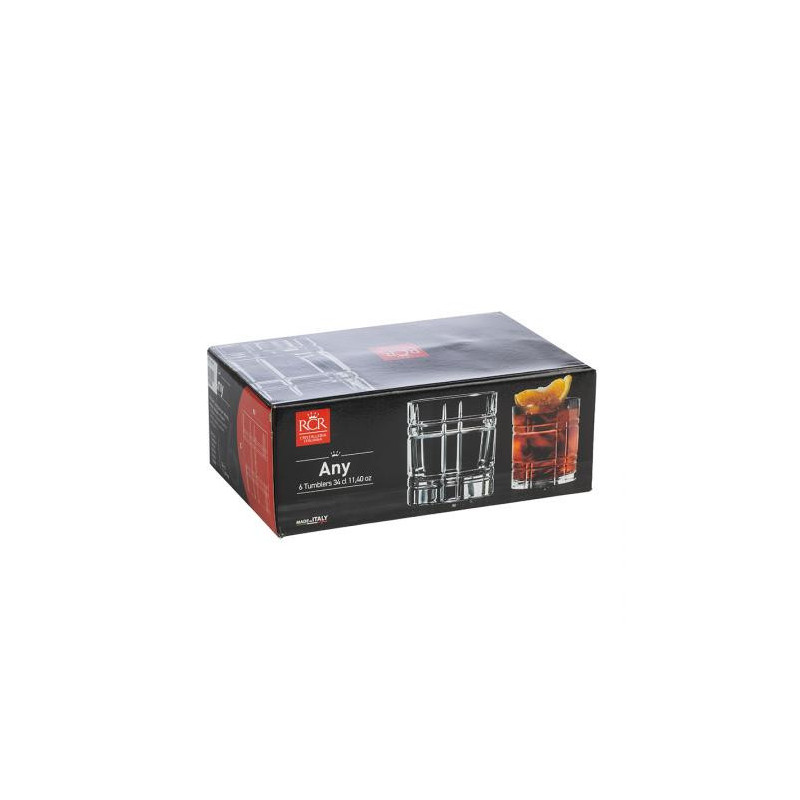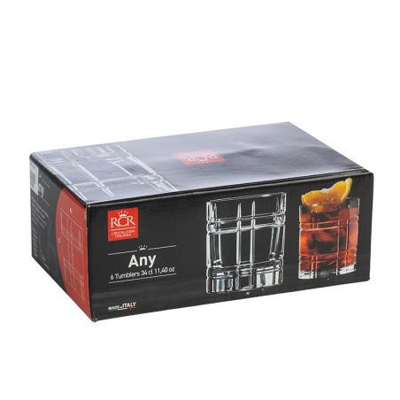 Чаши: Ø 8,2 см. Височина: 9,4 см. Вместимост: 340 мл. Стилен сервиз от 6 чаши за уиски, произведени от италианската фирма RCR Crystal. Чашите са предназначени за истинските ценители на малцовата напитка. Подходящи за почистване в съдомиялна машина. Подарете си финес и красота на масата с италианско качество и изящен дизайн.