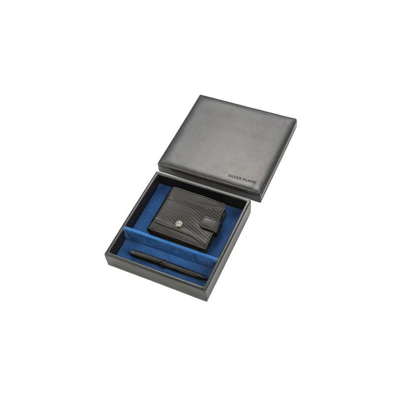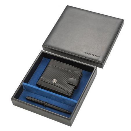 Стилен подаръчен сет в луксозна кутия включващ химикалка и портфейл с лого на Volkswagen. Размери на портфейла: 9 x 11 см