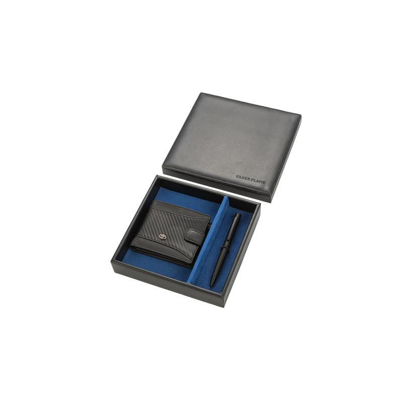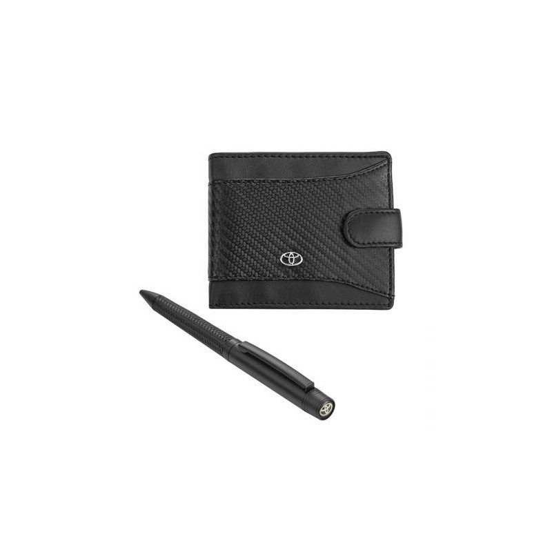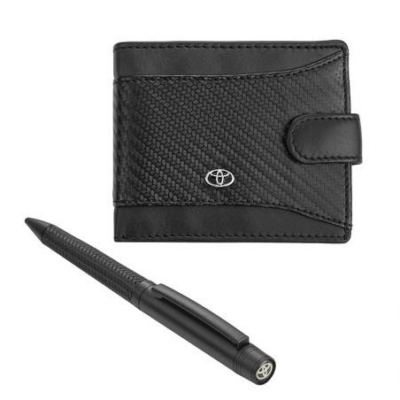 Стилен подаръчен сет в луксозна кутия включващ химикалка и портфейл с лого на Toyota. Размери на портфейла: 9 x 11 см